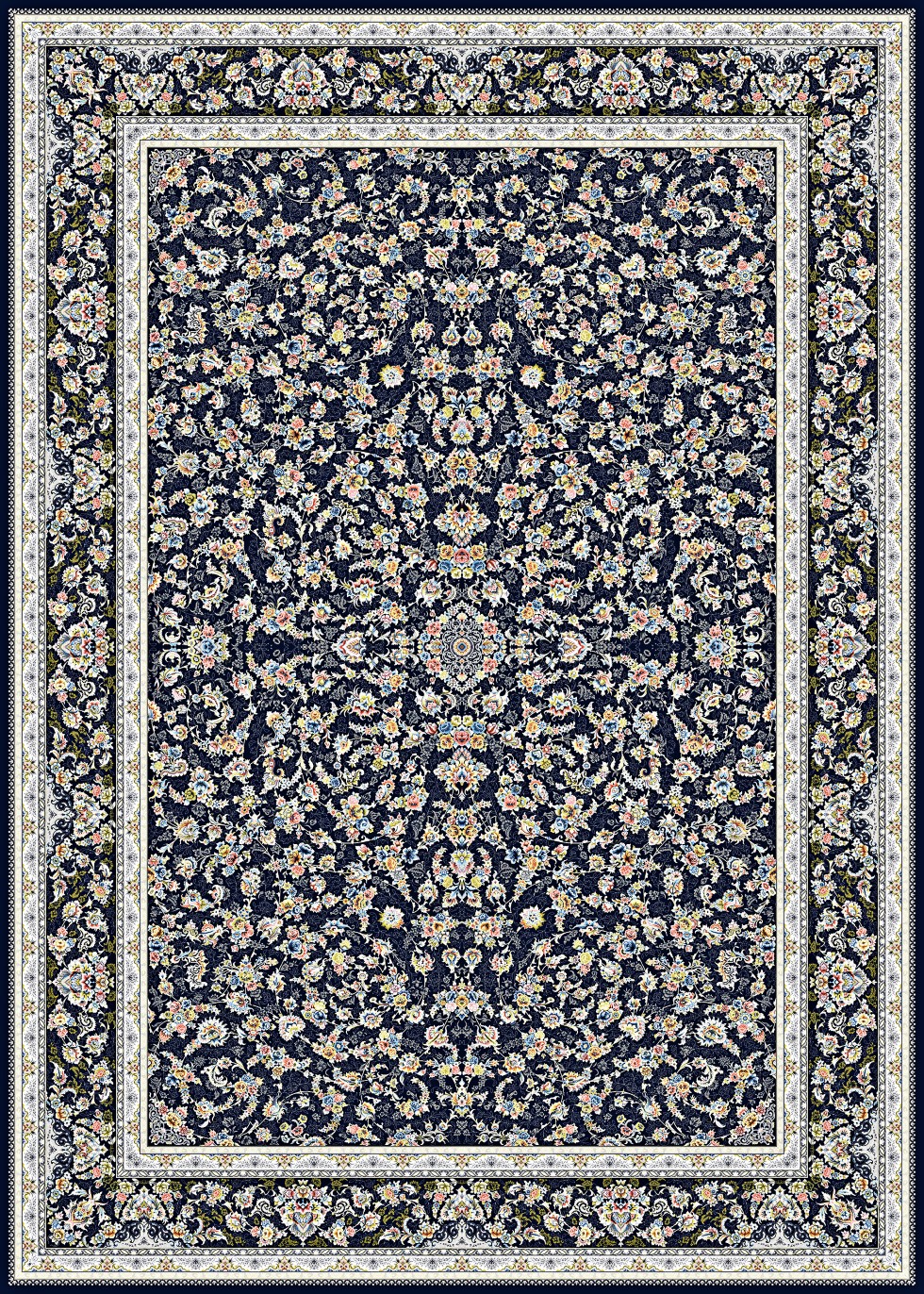 فرش قیطران ۱۵۰۰ شانه طرح دارینا سرمه ای
