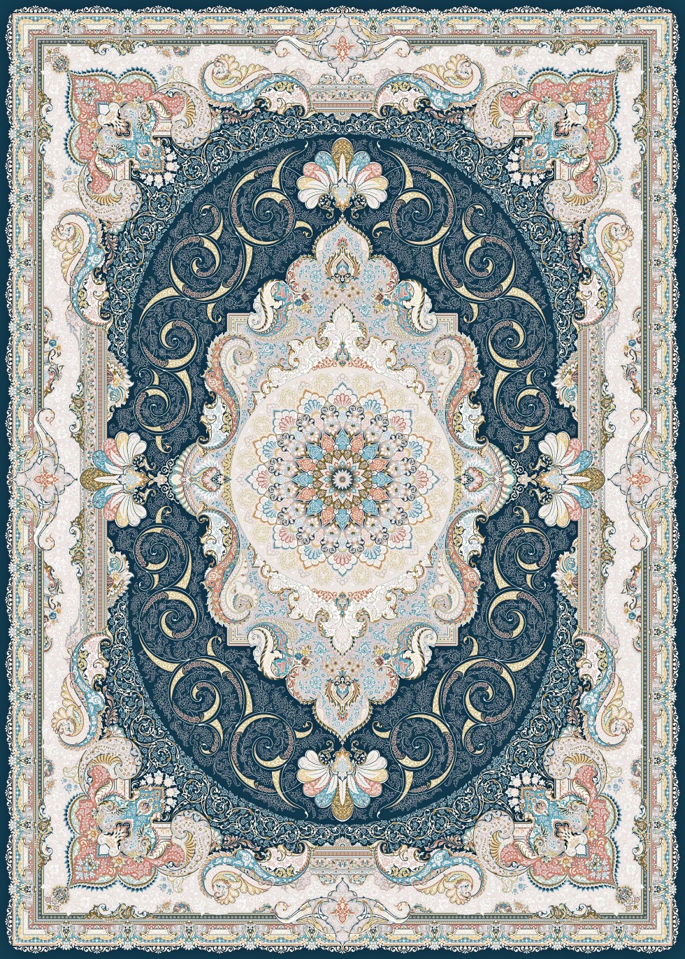 فرش قیطران ۱۵۰۰ شانه طرح زرین سرمه ای