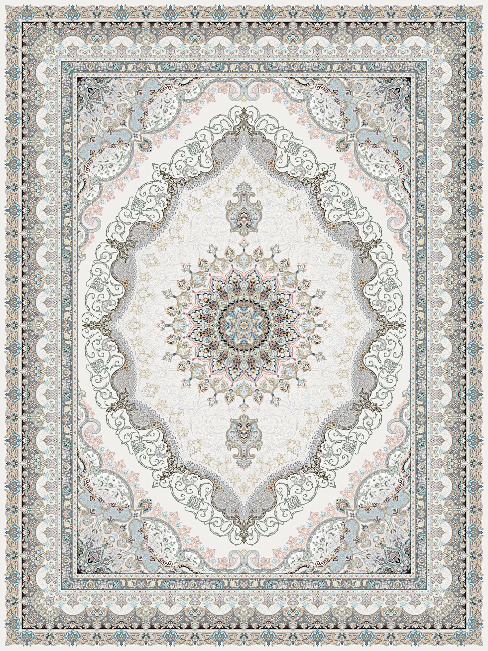 فرش قیطران ۱۵۰۰ شانه طرح مانیا کرم