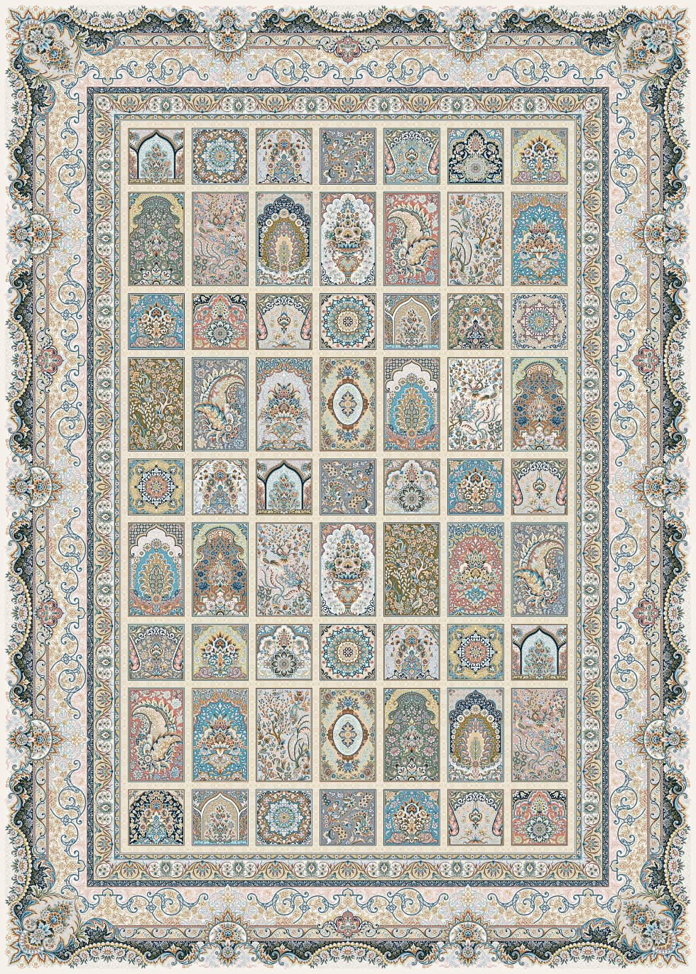 فرش قیطران ۱۵۰۰ شانه طرح مهرو کرم