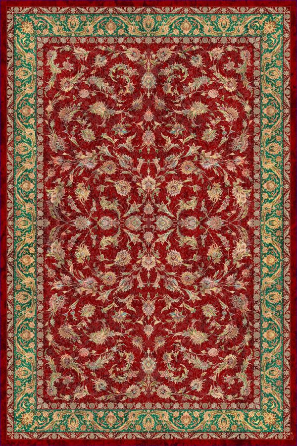 فرش کالتکس ۱۲۰۰ شانه طرح رستا لاکی حاشیه سبز