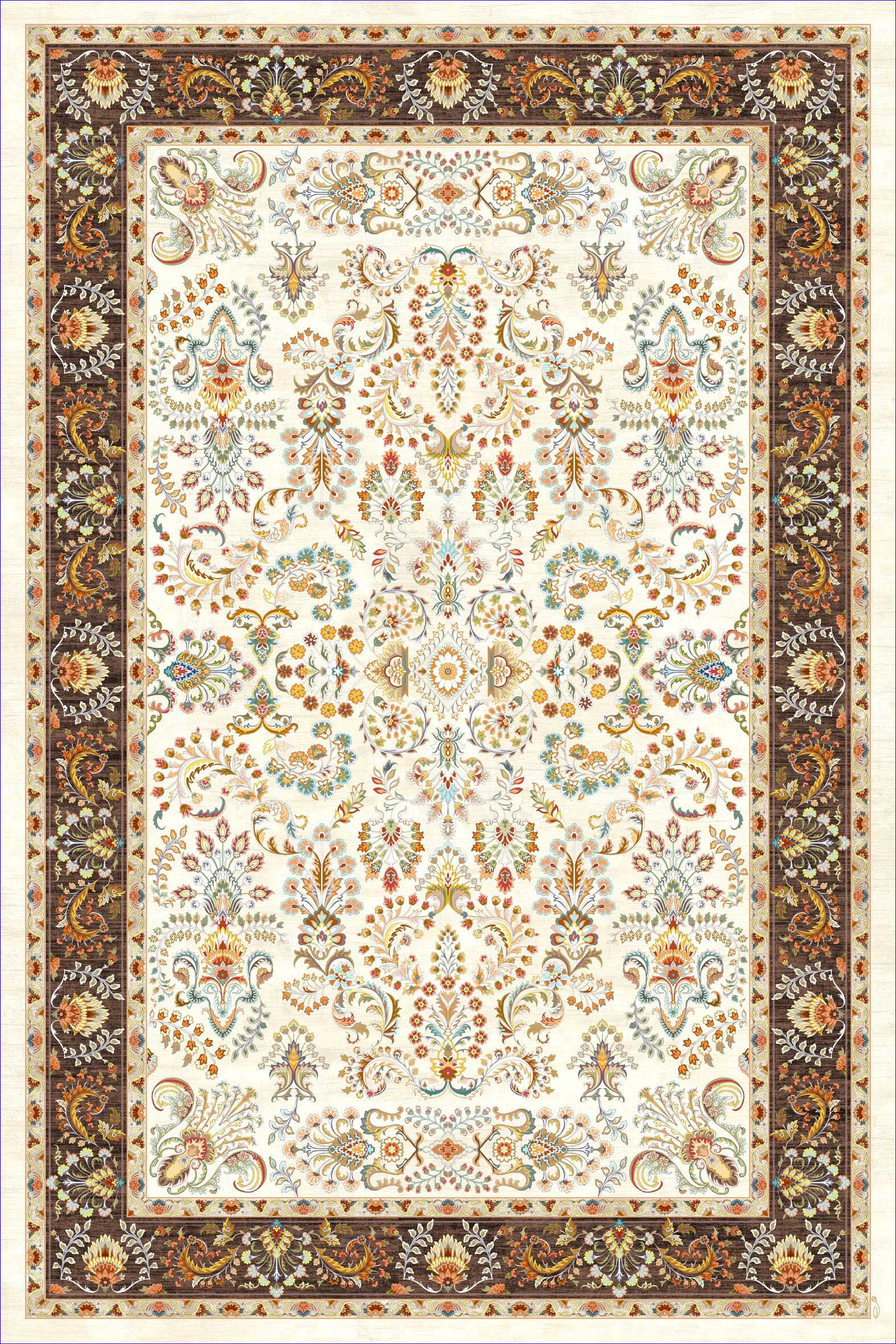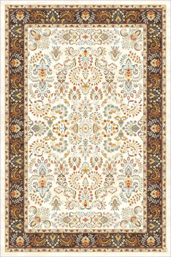 فرش کالتکس ۱۲۰۰ شانه طرح دلارا سفید حاشیه قهوه‌ای