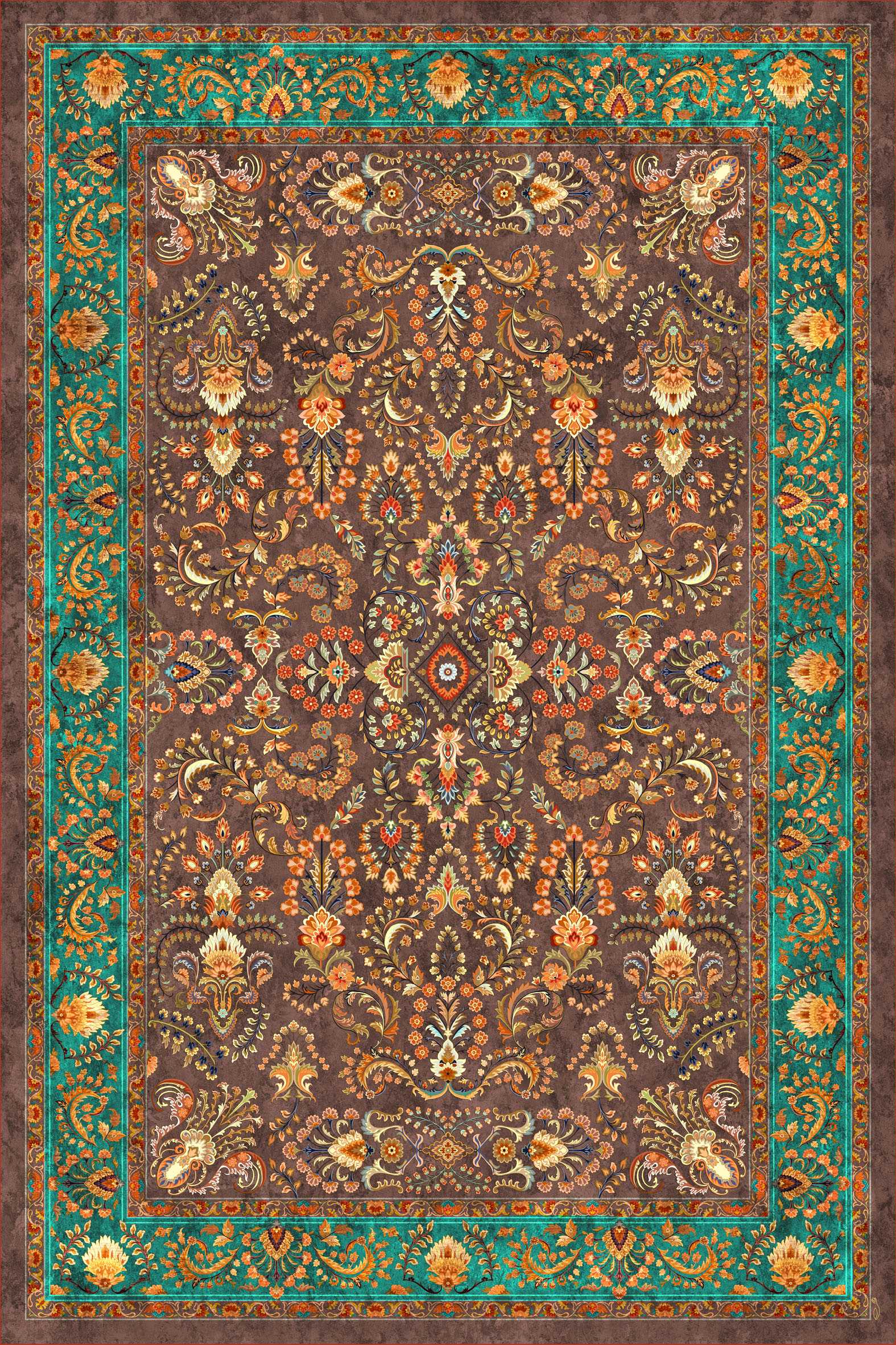 فرش کالتکس ۱۲۰۰ شانه طرح دلارا قهوه‌ای حاشیه سبز
