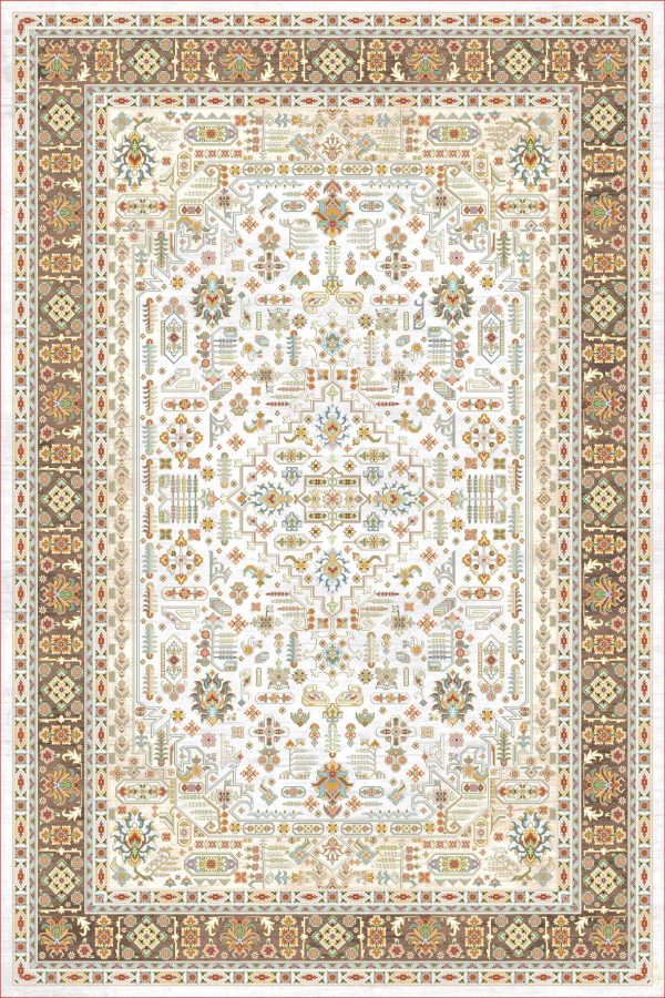 فرش کالتکس ۱۲۰۰ شانه طرح پارسه سفید حاشیه قهوه‌ای