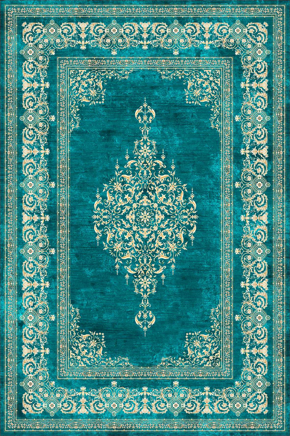 فرش کالتکس ۱۲۰۰ شانه طرح ویانا سبز لاجوردی