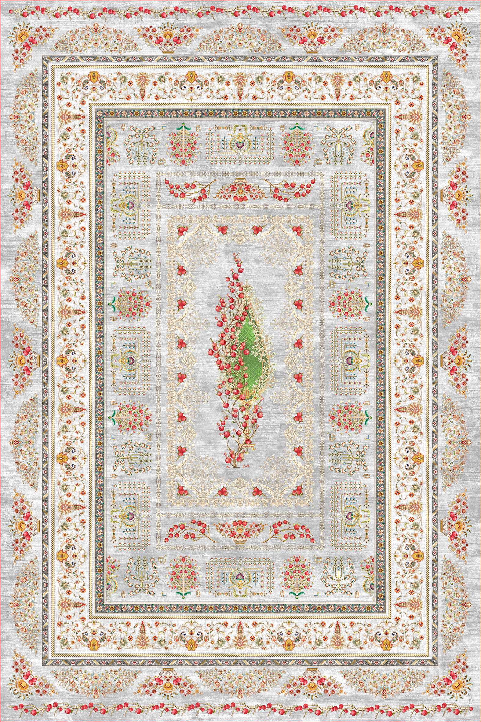 فرش کالتکس ۱۲۰۰ شانه طرح گلنوش طوسی روشن حاشیه سفید