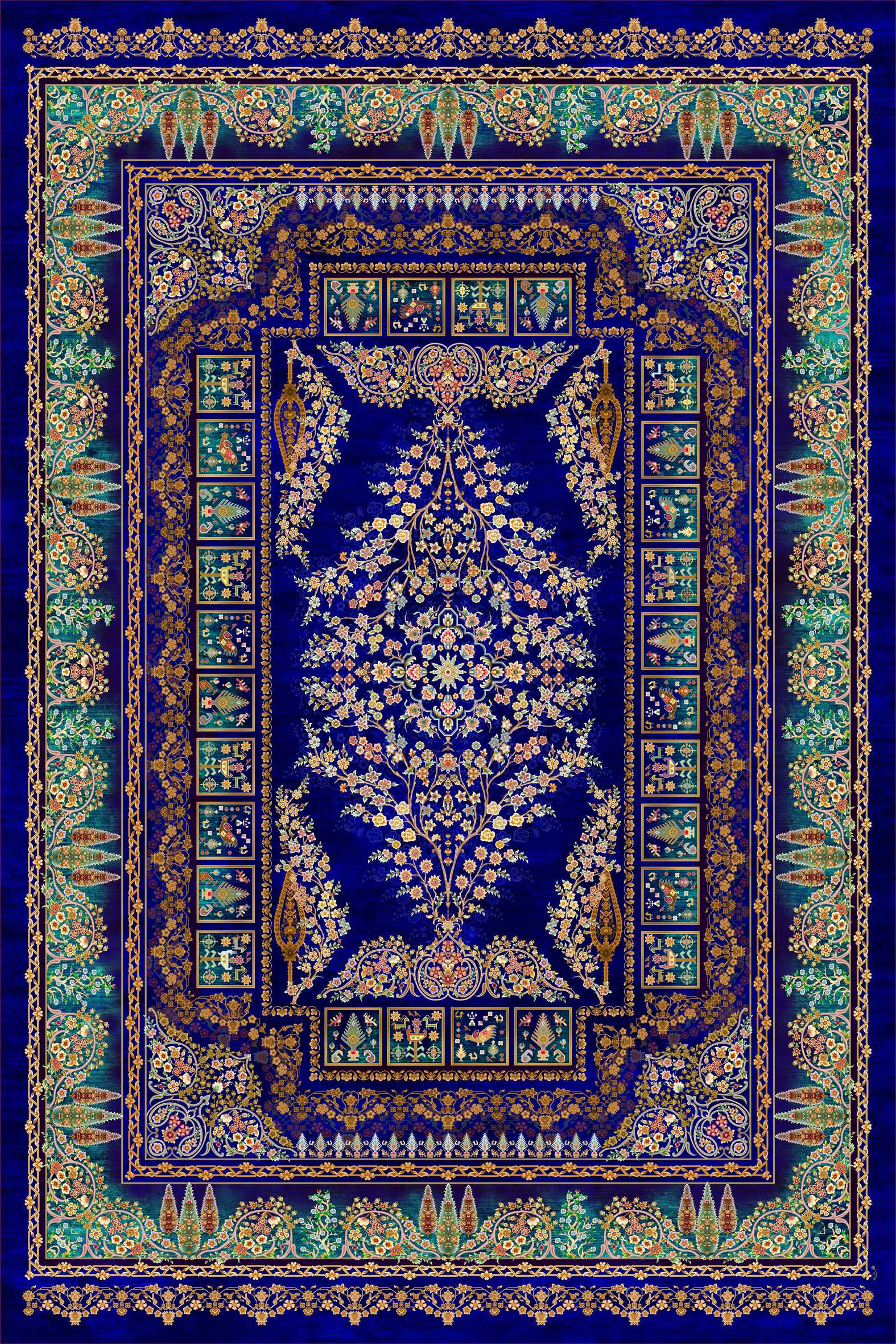 فرش کالتکس ۱۲۰۰ شانه طرح غنچه آبی کاربنی