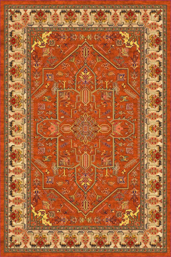 فرش کالتکس ۱۲۰۰ شانه طرح ایوان آجری حاشیه کرم